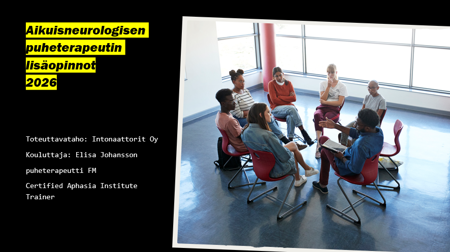 Intonaattorit Oy jakaa erityisosaamista aikuisneurologiseen puheterapiaan lisäopintona (yht. 3 op). Koulutuksia lisäopintoihin liittyen pitkin vuotta 2026.